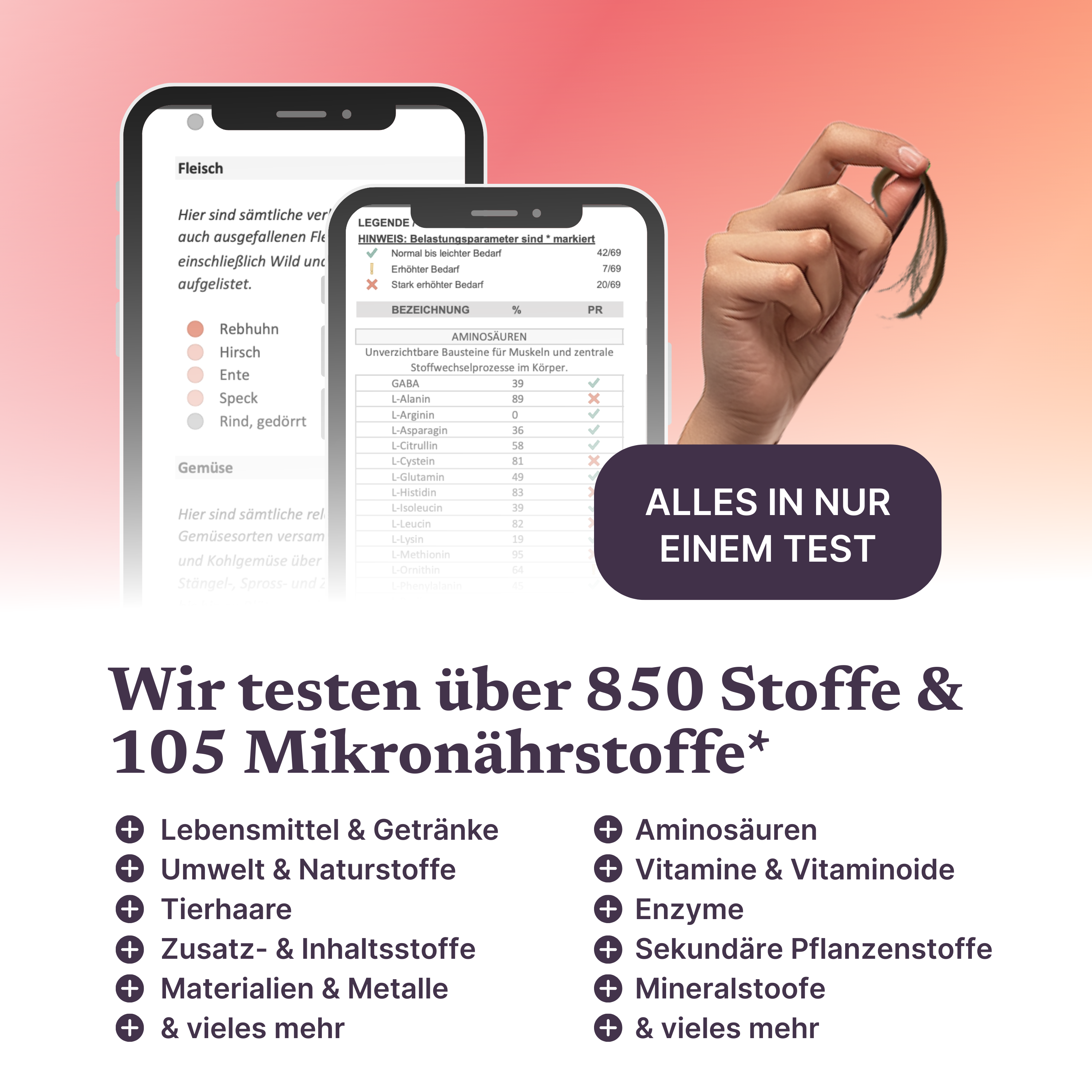 Extension à un profil de test plus complet, prenant en compte 30 micronutriments supplémentaires ainsi que 100 autres aliments et substances.*